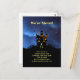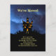 Humoriserat vykort visar ett svart hemsökt hus med fönster tända på en stormig kväll med åskväder och blixt. Den visar "Vi har flyttat" överst och kontaktinformation vid grund, i gult. Texten är anpassadet att anpassa den till kostym era behov. Lustigt, ett bra sätt att tillkännage din rörelse, bytet av adress och ett nytt hem. Det behöver inte ens vara Halloween.