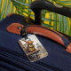 Luggage tag featuring a funny design of a mouse overlooking a vintage landscape scene with mills. Great for the experienced world traveler.