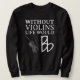 This hoodie is much better than I expected. top quality, true sizing, and really comfy. I was a bit worried that the lettering would be too dark on the navy blue hoodie, but once it arrived it was perfect. Easy to see the words, and the quality of the wording is fabulous. I will be buying more hoodies in future