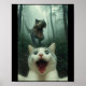 Funny White Cat Selfie With T-rex Dinosaur, Cat Ki Poster