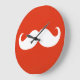 Funny White Mustache på Orange Red Stor Klocka