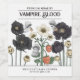 Lustigt svarta och vita "Vampire Blood" vin flaska-etiketter för Halloween-babyduschfavörer eller party-behandlingar. Konstruktionen av cottagecore har moody fallbilder av blommigtar av vampyrjordgubbar och svarta vallmo. Cute svamp spöken flyger runt blommorna. Texten kan enkelt anpassas med information om babyduschen.