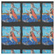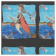 Den här anpassningsbarna vid varvet har en ständig bild av en rolig häxa i ett badande kostym som flyger över havet på väg till stranden med katten hängande på slutet av sin bomme med vit fiskmåsar som flyger bredvid henne i ett vågigt ram på svart bakgrund. .
