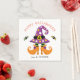 Den här söta Halloween-pappra blöjan har orangens påvlade häxans fötter som sticker ut från en stjärnig lila häxhatt. Små svarta fladdermöss med grönt och guld vingar flyger på vardera sidan. Orangen säger "Happy halloween" i en halvcirkel. Du kan anpassa ytterligare en text som fält står i grund. Cute, särskilt för barn, eller för Halloween firande. Grafik efter förtypsgrafik, © Prettygrafik.com