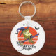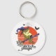 Funny Witch Frog Riding Broomstick Halloween Nyckelring