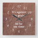 Den här humoristiska anpassningsbarna har nummer som går bakåt. I stället för 12, 1, 2 är siffrorna 12, 11, 10. Bakgrunden är en bild av träkorn från mangoträ. Det finns ingen WOOD på klockan, det är akryl. Det finns bara ett foto av figur. Klockan säger att det är mot mitt korn att vara i tid. Du kan anpassa den här klockan genom att ändra eller ta bort ord eller siffror, eller genom att ändra till en annan form eller storlek klocka ansikte. Det här är perfekt för någon som alltid är sen.