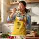 A yellow kitchen apron with a witty message in black, perfect for anyone who loves tasting while cooking. The print features the phrase "TASTE TESTER in Training" with a smiling bowl and spoon icon. Below, there is space for the name of the taste tester, such as Emily.