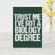 Lita på mig att jag har Har en biologigrad. Ett studenten-humor-kort för en rolig biolärare eller professor efter att de har högskola i student eller universiteten med en lärarexamen. En coola biolog-offertdesign.