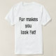 Fur Makes You Look Fat Animal Rights T-shirt. Does it break your heart to see people wear fur even when they know the horrors the animals go through? Well, for some of these people, the only thing that matters to them is vanity. So, this is for you! Text is "Fur makes you look Fat!".