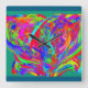 Furry Rainbow Colored Flower Fyrkantig Klocka