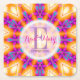 Geometrisk mandala-blomma i lila, rosa och orange. Vacker blomster monogram och anpassat namn i mitten. Sommar eftermiddag bröllop, förlovning, brud och par shower.