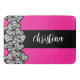 Fuschia rosa svart vitt zebra mönstrad hjärta namn badrumsmatta