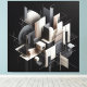 Eine detailreiche abstrakte Komposition, inspiriert von architektonischen Formen und futuristischen Raumstrukturen. Geschichtete geometrische Elemente, gedeckte Farbtöne und präzise Linien erzeugen Tiefe, Rhythmus und eine skulpturale Präsenz. Dieses Kunstwerk verleiht modernen Wohnräumen, Büros, Studios und galerieartigen Innenbereichen eine anspruchsvolle, zeitgenössische Atmosphäre.
