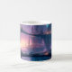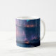 Futuristic cityscape with towering structures and interconnected platforms, reflecting in a body of water. The color palette is dominated by blues and purples, with hints of orange and pink from the setting sun. The city is illuminated with numerous lights, creating a vibrant and dynamic atmosphere.