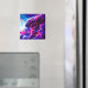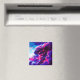 A powerful cosmic leopard emerging from vibrant clouds of neon pink, electric blue, and deep violet.