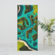 A vibrant aerial illustration of lush green islands and winding waterways, blending teal and emerald tones in a bold, futuristic style. This top-down view captures the intricate network of land and water, showcasing the unique beauty and architecture of floating landscapes.
