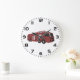 Keep track of time with this unique industrial concept art wall clock. Featuring a sleek cyberpunk machine and futuristic red transport design, this timepiece adds a modern automotive aesthetic to any office, workshop, or gaming room. The bold sci-fi command vehicle graphic serves as a functional piece of art for fans of retro futurism and heavy expedition trucks. Clear and easy to read, this galactic rover clock is the perfect home decor item for anyone who appreciates high-tech digital graphic illustrations.