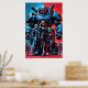 Futuristic soldiers and armored robot in a science poster
