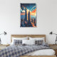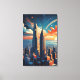 A cinematic futuristic skyline illuminated by a radiant sunrise, blending sci-fi atmosphere with modern architectural design. The warm light cascading over the city adds depth, contrast, and an inspiring sense of scale—perfect for contemporary interiors, creative studios, offices, or anyone who loves bold, imaginative urban art.