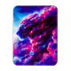 En kraftfull kosmisk leopard som framträder ur levande moln av neonrosa, elektrisk blå och djup violett.