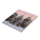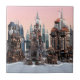 3D digital återgivning av en stad i futuristiskan science fiction på rosa himlar