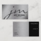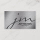 Gör ett underbart första intryck med dessa dubbla-sidiga, professionell- och högeffektsinriktade affärskort! Ta dig ur den metalliska bakgrunden och monokromatiska bokstäver, och kraftfull men enkel sans serif typsnitt. Anpassa initialer, titel, position, e-post adress, kontaktnummer och namn. Design © W.H. Sim. Se mer på zazzle.com/expressionsoccasions