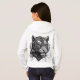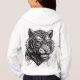 En digital illustration av futuristiskans huvud, där den stora katten slås samman med inslag av avancerad teknik och kreativ design.