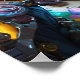 En futuristiska, anime-stil med vibrant färg framställs med hjälp av högteknologiska växlar och hörlurar. Bakgrunden har körsbärsmönstret träd och varsamt ljusglimtar blommar.