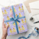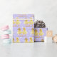 Tvättfuzzy gult, ett par på en pastelliserad lila och vit polka-punkt mönster.