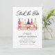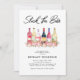 Fyll baren möhippa inbjudan med ett urval av akvarellflaskor, söta rosa blommor och en elegant brölloppsfestmall som är enkel att anpassa.