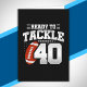 Denna roliga fotbollsfödelsedagsdesign är perfekt för en 40-års födelsedag fotbollstema födelsedagsfest för att fira att fylla 40 år! Det är också bra för en 40-års bröllopsdag fest för par som firar sin 40-årsdag tillsammans. Funktioner "Redo att tackla 40" citat med fotboll grafik. Perfekt för alla som älskar fotboll!