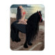 Fantastisk frisisk allion med en vacker kvinna på ryggen! Fantastiskt landskap, strand, tropisk ö!