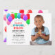 Färgglada ballonger och blåa accenter visar ditt foto på denna inbjudan som är perfekt för en FYNDIG 4-års födelsedagsfest. Varje fält är helt anpassningsbart för att säga exakt vad du vill!