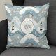 Denna bedårande personliga sjöfartskudde har en oljemålning av mysiga fyrar med isiga vågor och snöflingor.