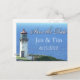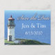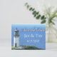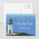 Vit fyr med utsikt över blå oceanvik med parets namn och bröllopsdatum - lätt att anpassa. Klicka bara på anpassa för att ändra till dina egna namn och datum eller lägg till den text du vill.
