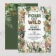 Fira din lilla pojkes födelsedag med stil med vår livfulla safari-inbjudan! Med en fantasifull design som perfekt fångar djungelns anda, kommer denna inbjudan säkert att imponera dina gäster. Inbjudans design har en mängd olika vilda djur, inklusive lejon, zebror och elefanter, omgivna av frodiga djungelblad och färgglada ballonger i nyanser av grönt, svart och guld. Leoprinten lägger en touch av vildhet och kul till designen, medan den lekfulla typografin sätter tonen för en glädjefylld fest.