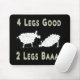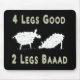 Två lustiga får illustrerar berömden "fyra ben bra, två ben bad" citat från George Orwells Animal Farm. Designat för att visa skillnaden mellan revolutionära djur (bra) och humana befälhavare (dåliga) i humor införs av ett av fåren som bara har två ben. Underbar för att äta gräs - inte så bra om du behöver flytta till en annan betesmark. Litteratur, betydelse och en humoristisk tecknad för får.