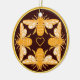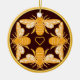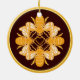 Fyra heraldiska tittar honungsbin på mörk rik Brunt guld-fälgcirkel med ett gyllene hjärta i mitten På ena sidan av bina ansikte in och på den andra sidan av bina ansikte ut när prydnaden roterar, dvs. bina dansar