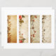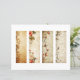 Fyra blommigtar bokmärken på fingerad vintage/urkopplad papper bakgrund. Varje bokmärke mäter ca 2 x 5,5 tum vid utklippning.