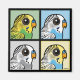 Fyra olika färg-morfer av Budgerigar finns i denna popart stil. Det är en perfekt-gåva till vilken Budgerigar älskare som helst! Du kan anpassa den här presenten! Flytta runt designen, ändra produkten färg eller stil, lägg till text eller bilder - gör den till din egen!