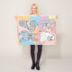 Det här är en filt som har en roligt och söt utskrift på fyra hundar.