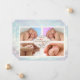 En tilltalande, grungebakgrund med nyanser av blå, rosa, lavendel och off-white visar dina fyra inramade foton. De är överlagda med en dekorativ panel prydd med små hjärtan. Perfekt som födelseannons för tvillingar, flerbilderannonsering för singlar och fungerar bra som födelsedagsfestinbjudan. (FP)