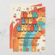 Fyra gånger Groovy Retro Rainbow 4e födelsedagen Inbjudningar