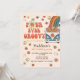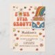 Fyra gånger Groovy Retro Rainbow 4e födelsedagen Inbjudningar