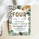 Fyra Vilder tidigare Leopard Skriv ut jungle Birthday-inbjudan