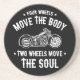 " Flyttning för fyra hjul förkroppsliga, flyttning för två hjul soulen.", Anden av att flytta sig fritt i den öppna luften och solskenet. Svartvit western bokstäver med en bläckcykel, på t-skjortor, svettar, gåvaobjekt.