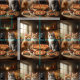 Bild runt en Bord i köket är att fyra katter har pizza för middagen.