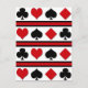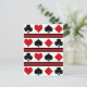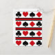 Kortsikoner i kostym som är isolerade på svart, röd och vit strimlad bakgrund