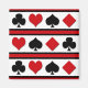 Kortsikoner i kostym som är isolerade på svart, röd och vit strimlad bakgrund
