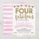 Fyra och Fabulous Girls Rosa & Guld 4e födelsedage Inbjudningar